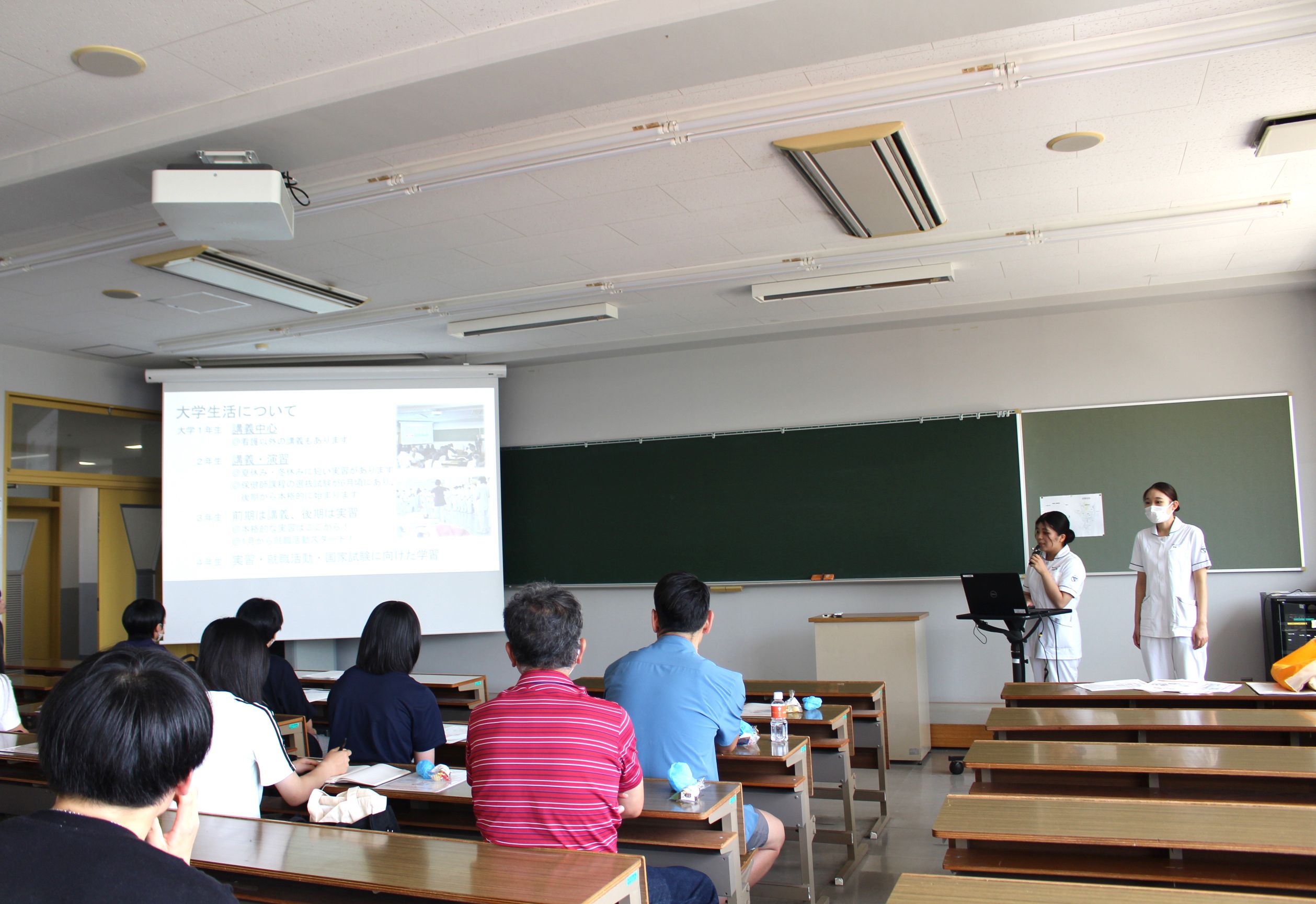 学生からのプレゼンテーションは、4年生が大学生活について分かりやすく説明してくれました。