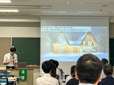 (一社)実践教育訓練学会が主催する第8回建築設計競技において2等入賞した3年生の佐々木君と小松崎さん?澤田さん?橋本さんグループが、8月22日に東京都立産業技術高等専門学校荒川キャンパスで開催された受賞発表会に参加して、プレゼンテーションを行いました。プレゼン後、賞をいただいた企業の方から講評を頂きました。今後の更なる活躍が期待されます!